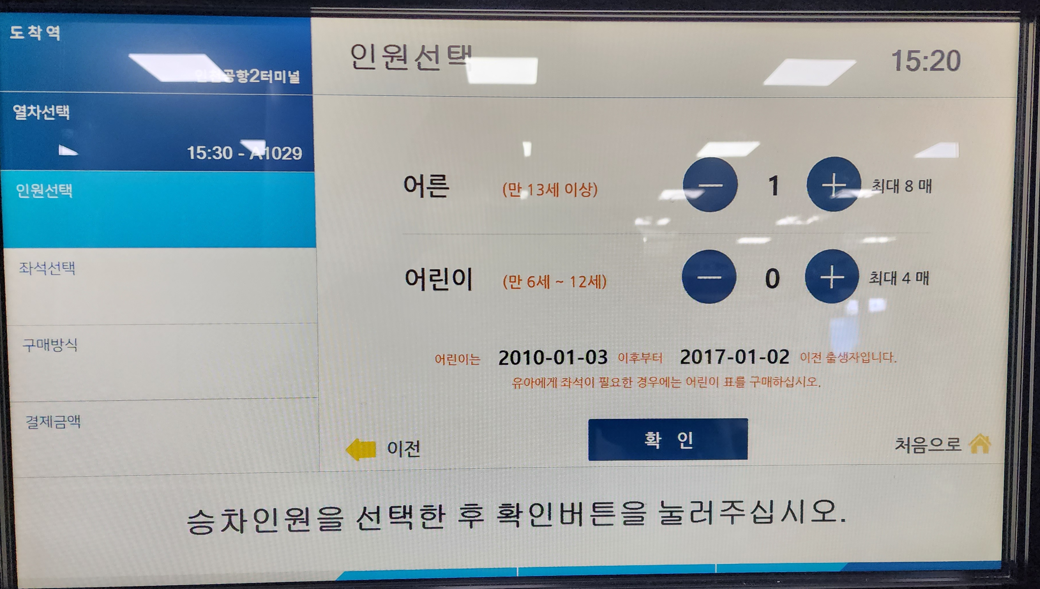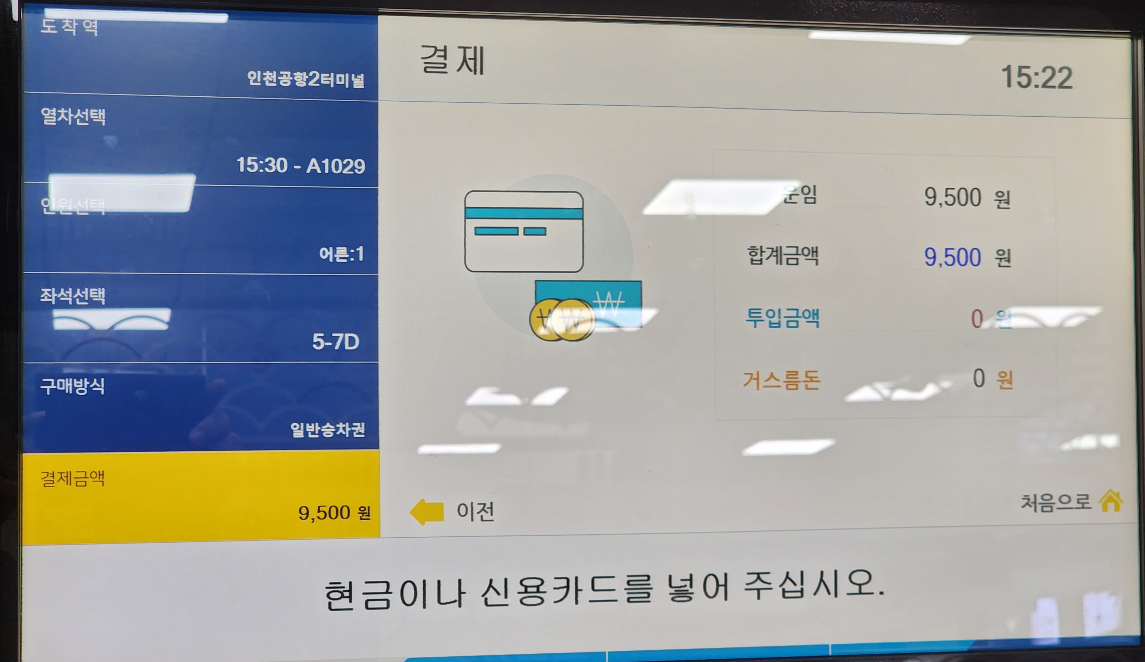 ▶직통열차 승차권 무인발매기 이용방법