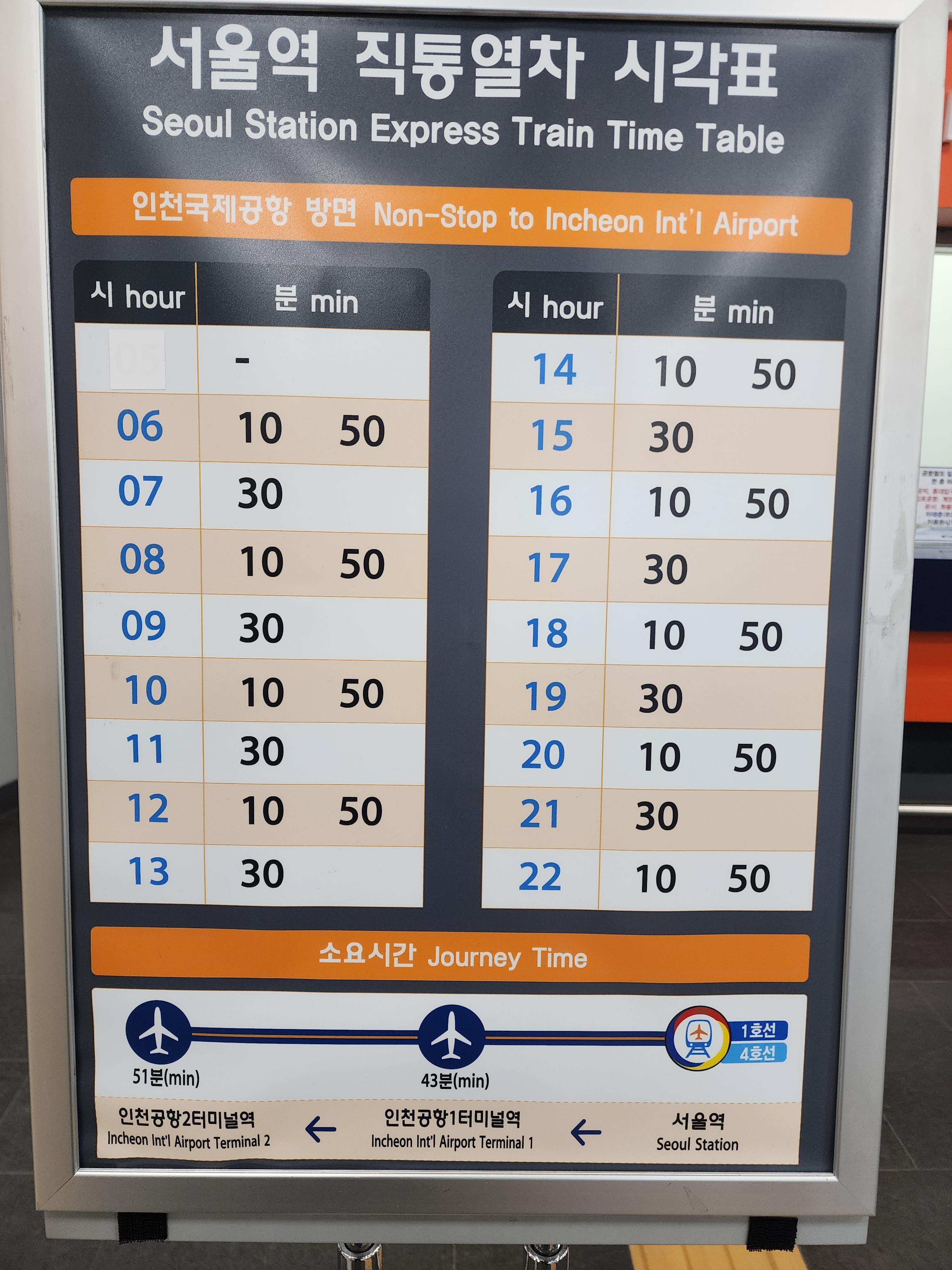 서울역 공항철도 직통열차와 일반열차 시간표에 대하여 알아보자.