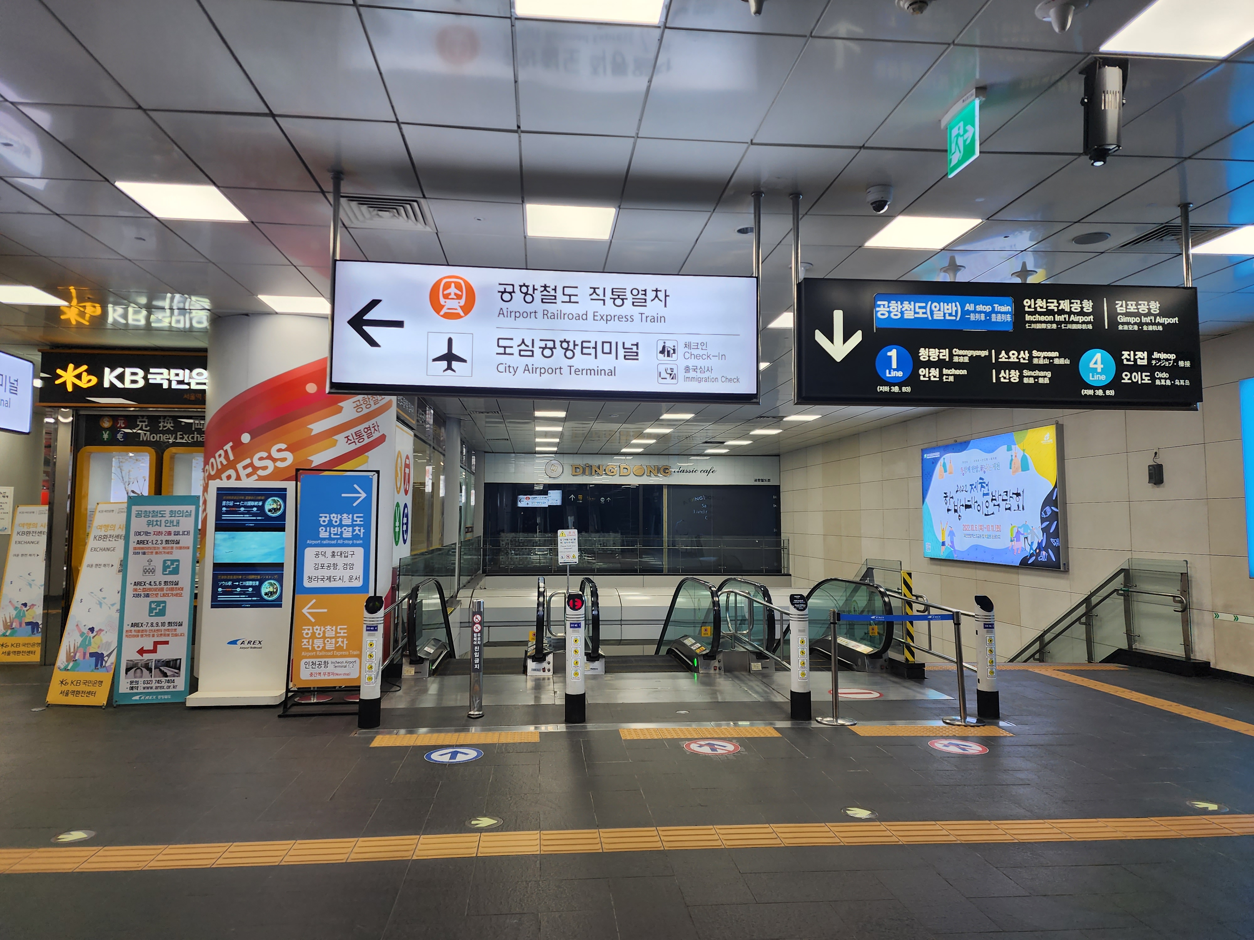 직통열차 타는곳은 서울역 지하2층에 위치하고 일반열차는 지하3층에 매표소가 있다.