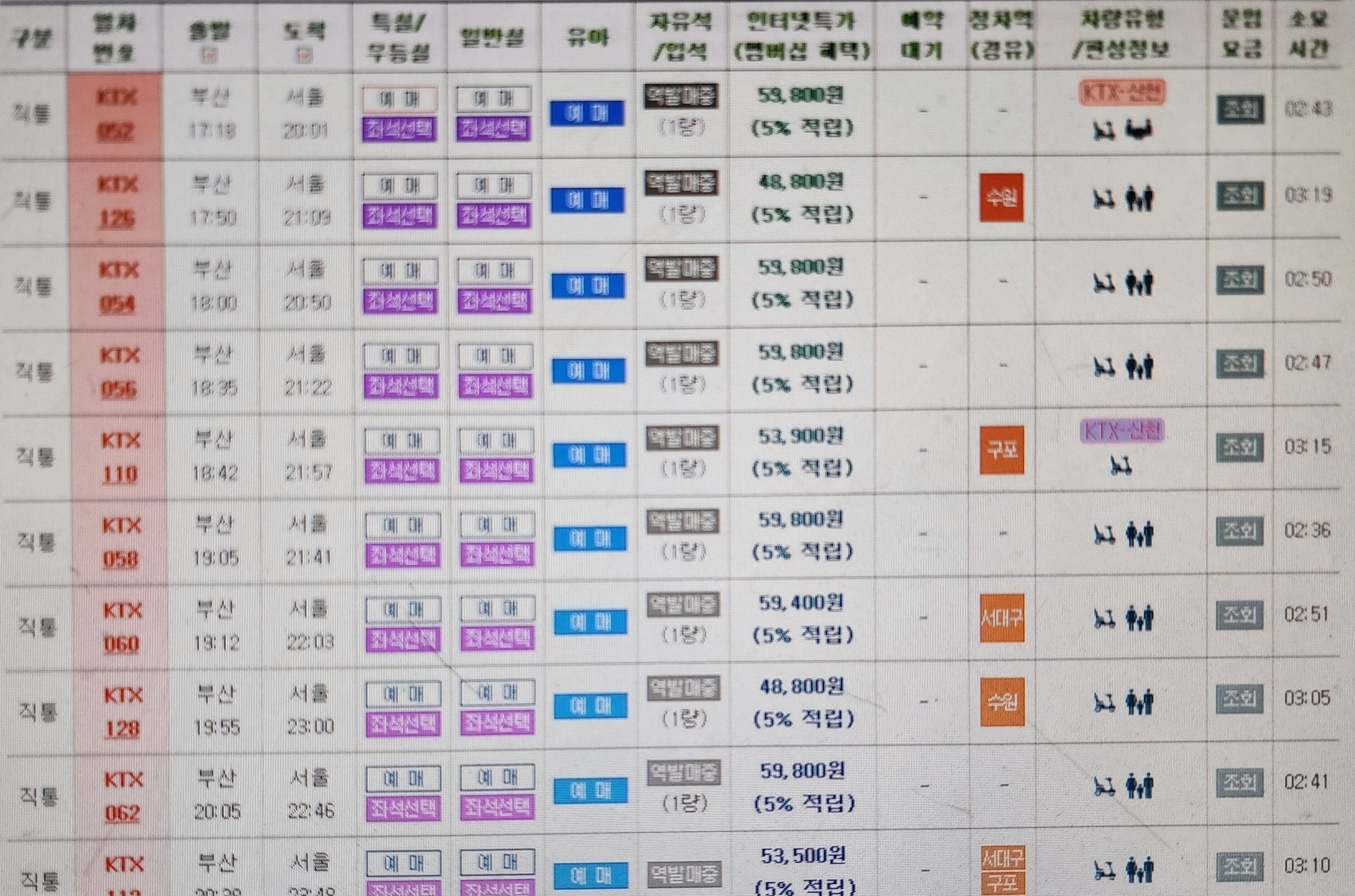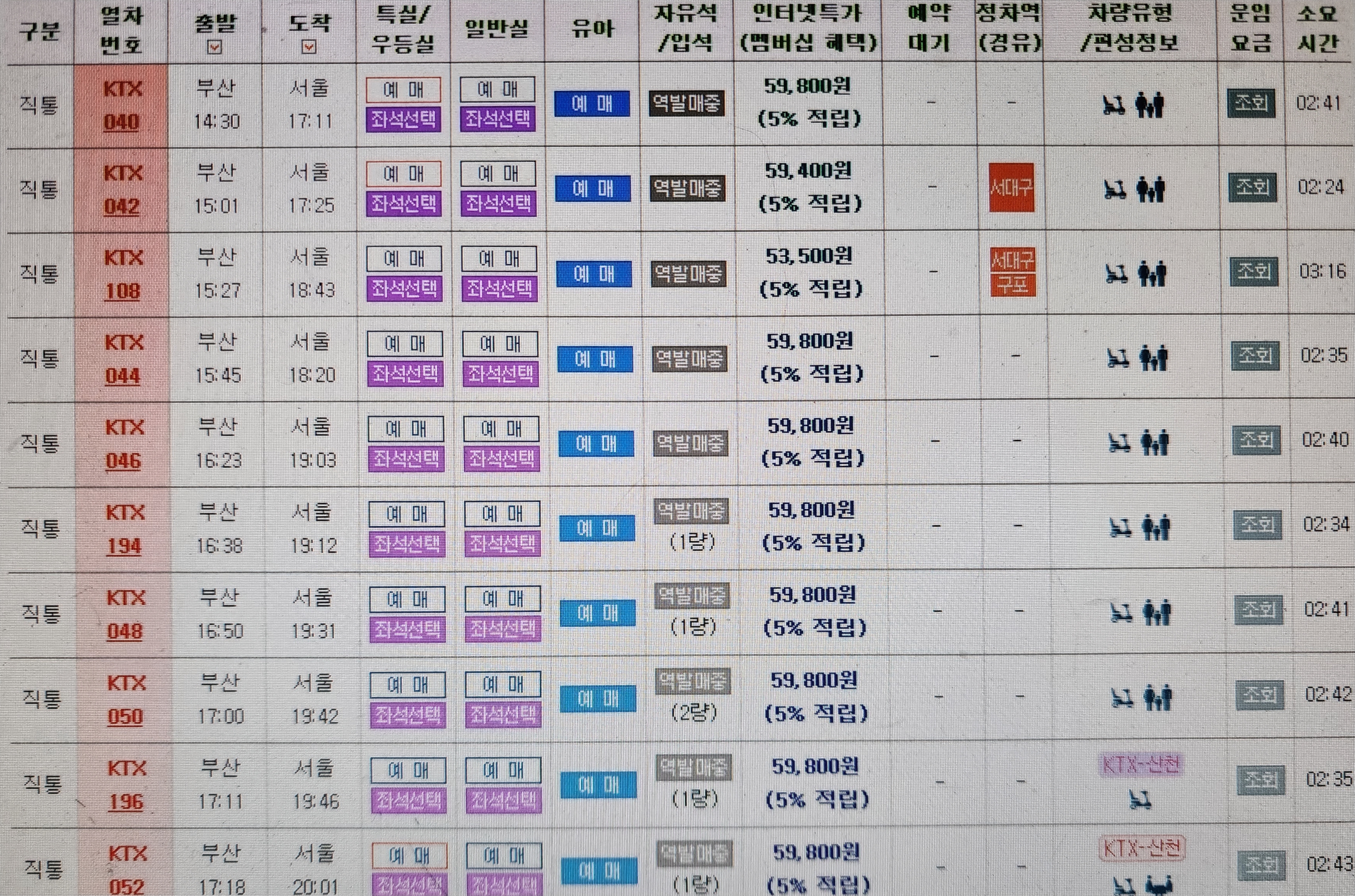 서울역에서 부산역가는 KTX 시간표에 대하여 알아보자.