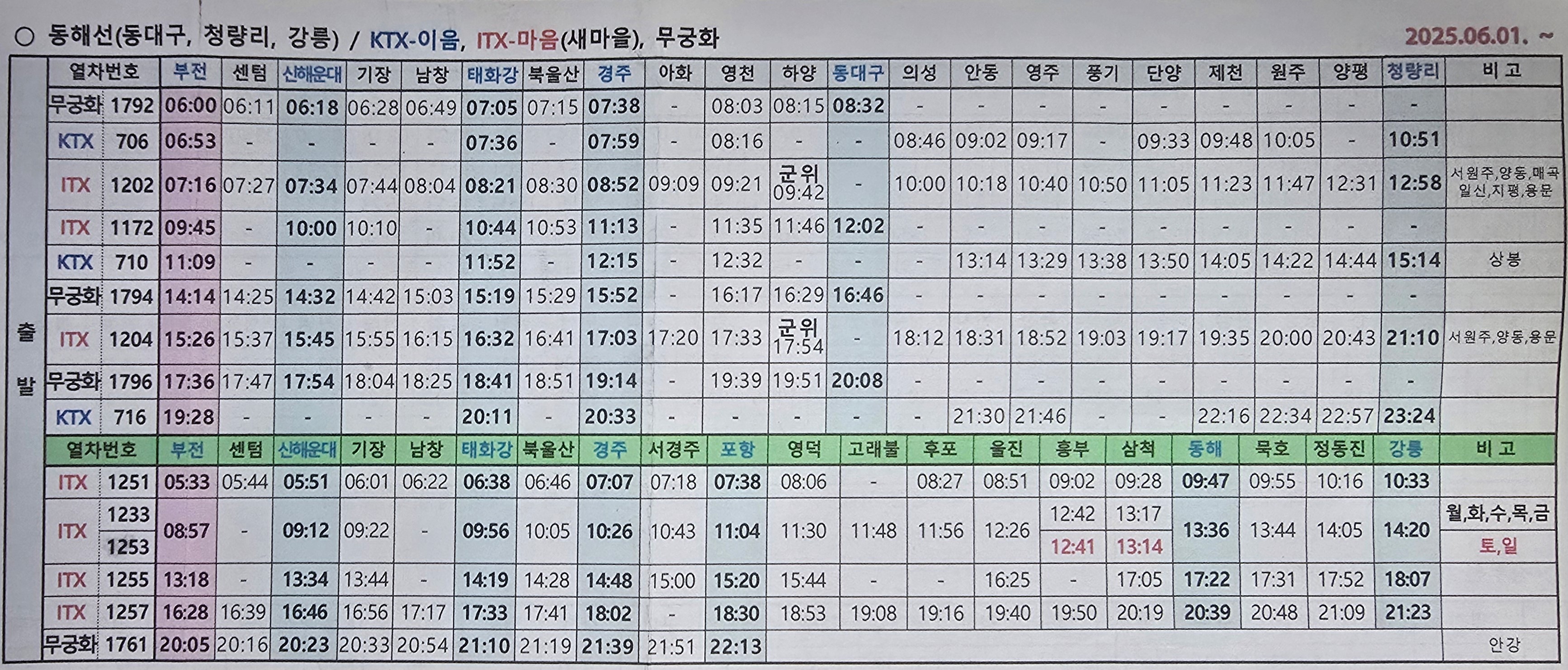 | 포항역 KTX 기차 시간표 강릉 (2) | 2025.09.05 |