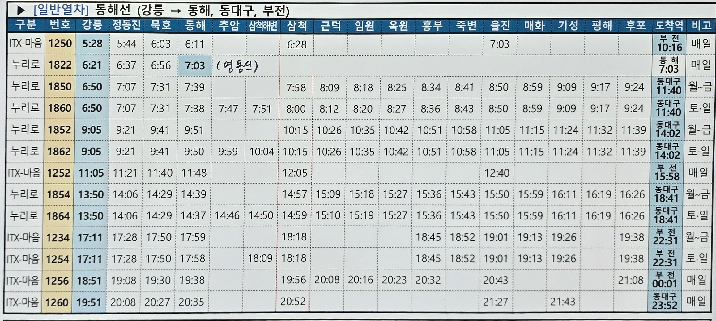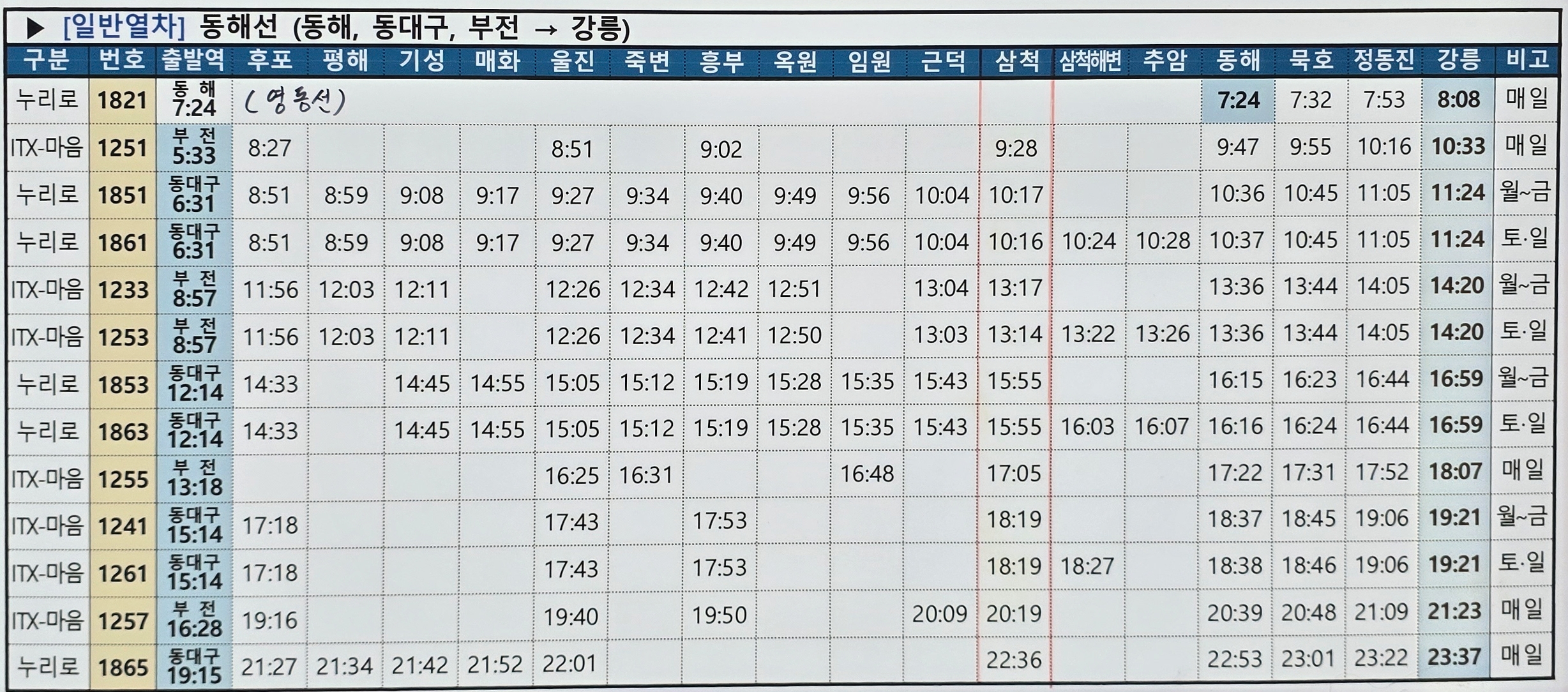 | 부전역 기차 시간표 부산에서 강릉 동해선 (0) | 2025.09.07 |