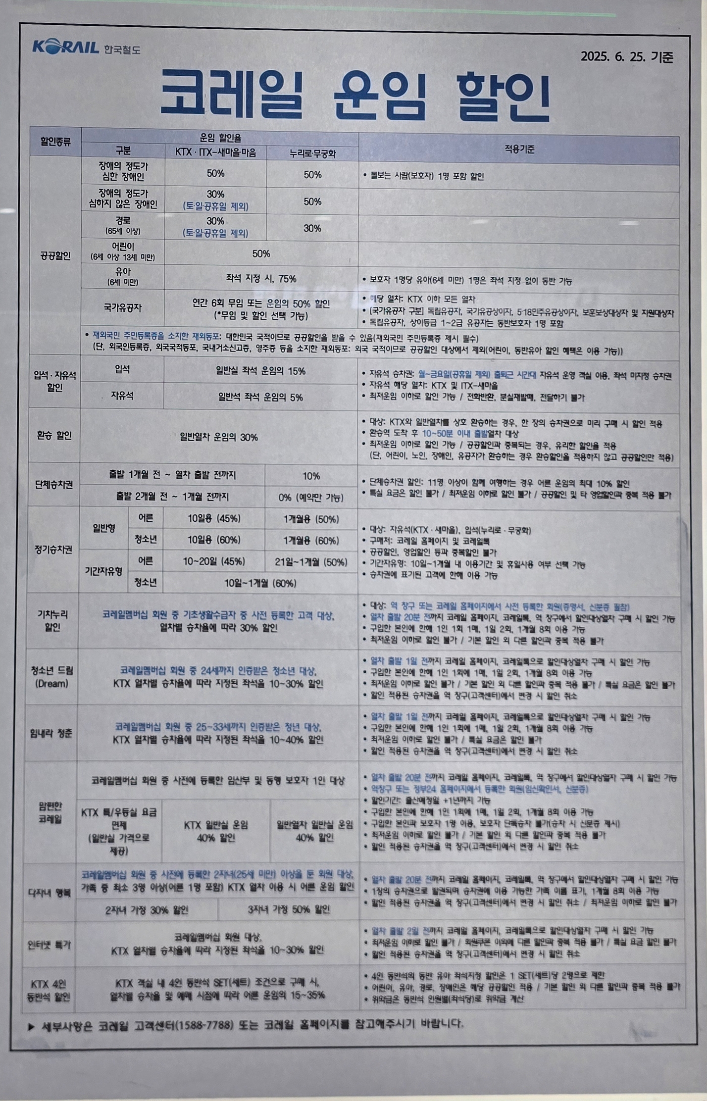 기차 승차권 요금 할인