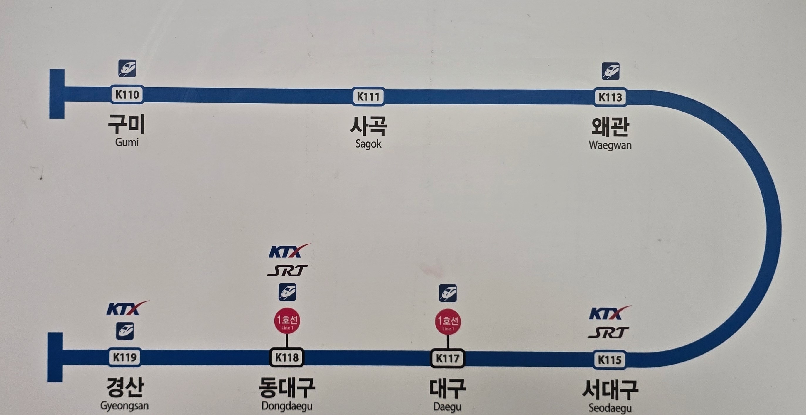 대경선 노선은 구미역에서 사곡,왜관.서대구,대구,동대구역을 거쳐서 경산역까지 운행한다.