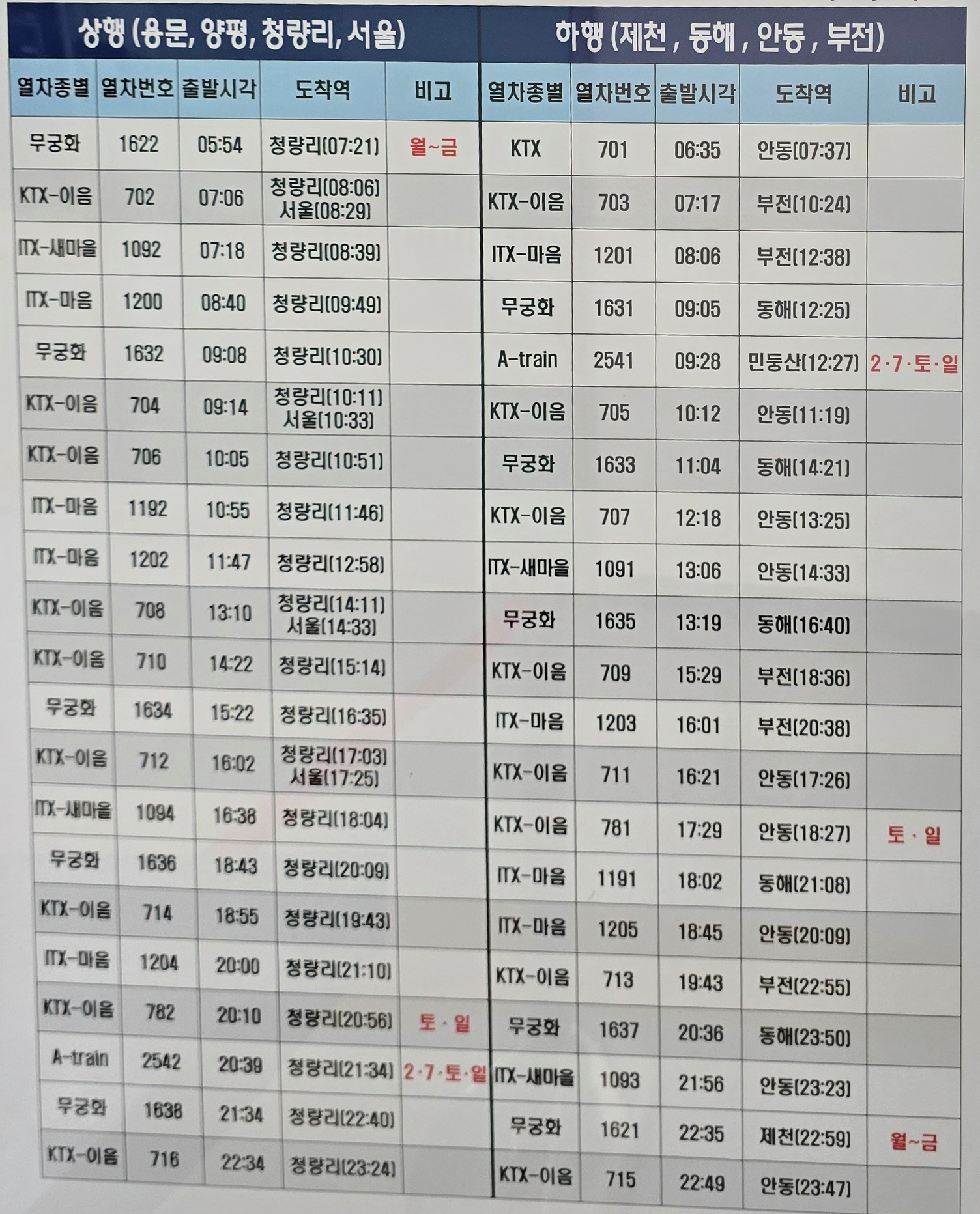 기차 운행은 '코레일'사정으로 시간표가 변경될 수 있다.