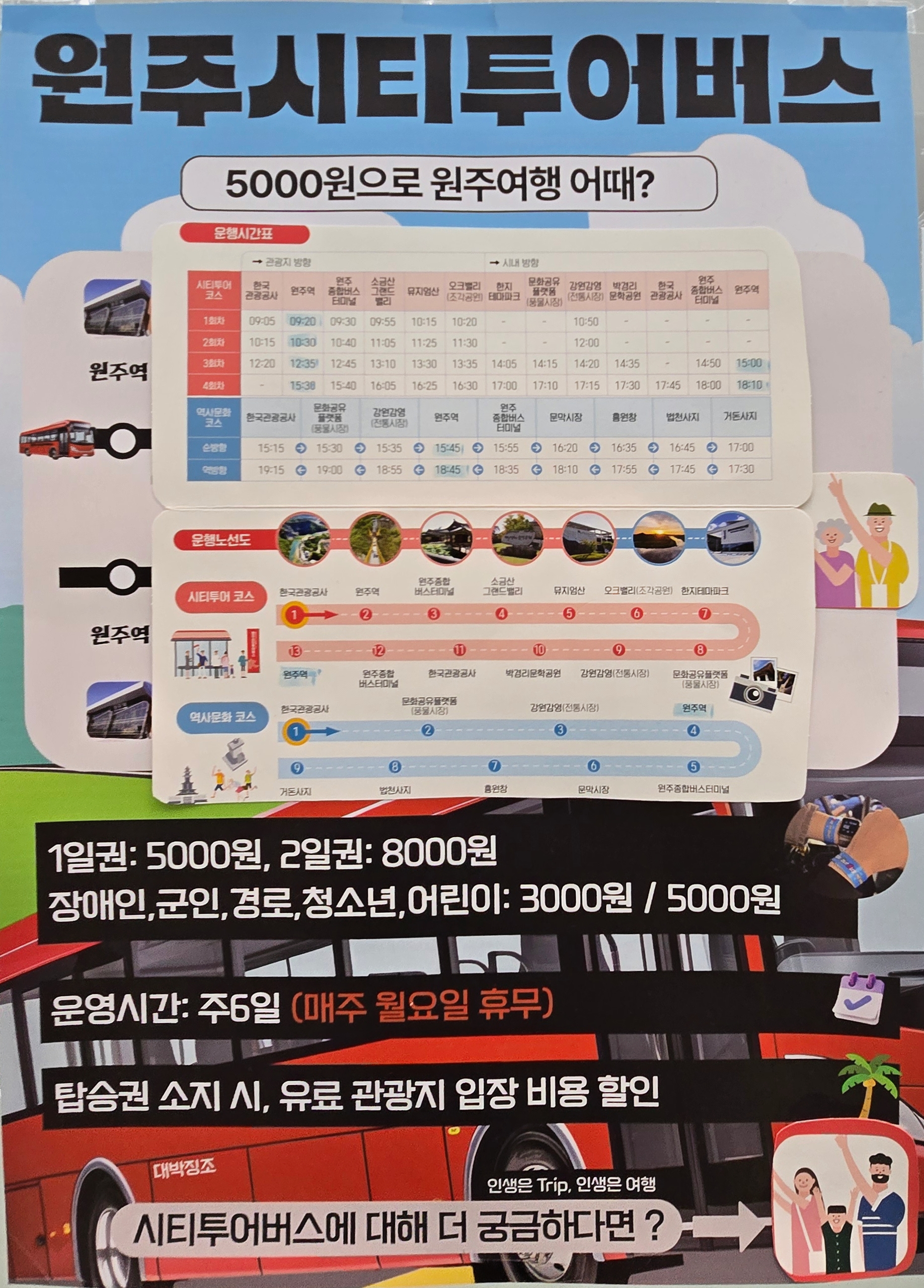 그리고 매주 월요일은 원주시티투어버스는 운행하지 않는다.